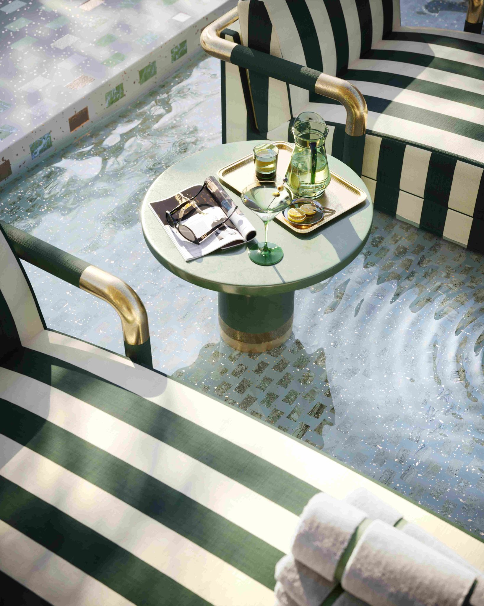 • 44’ lap pool, 3,800 sq. ft. pool club with two poolside bars, gelateria, and private cabanas