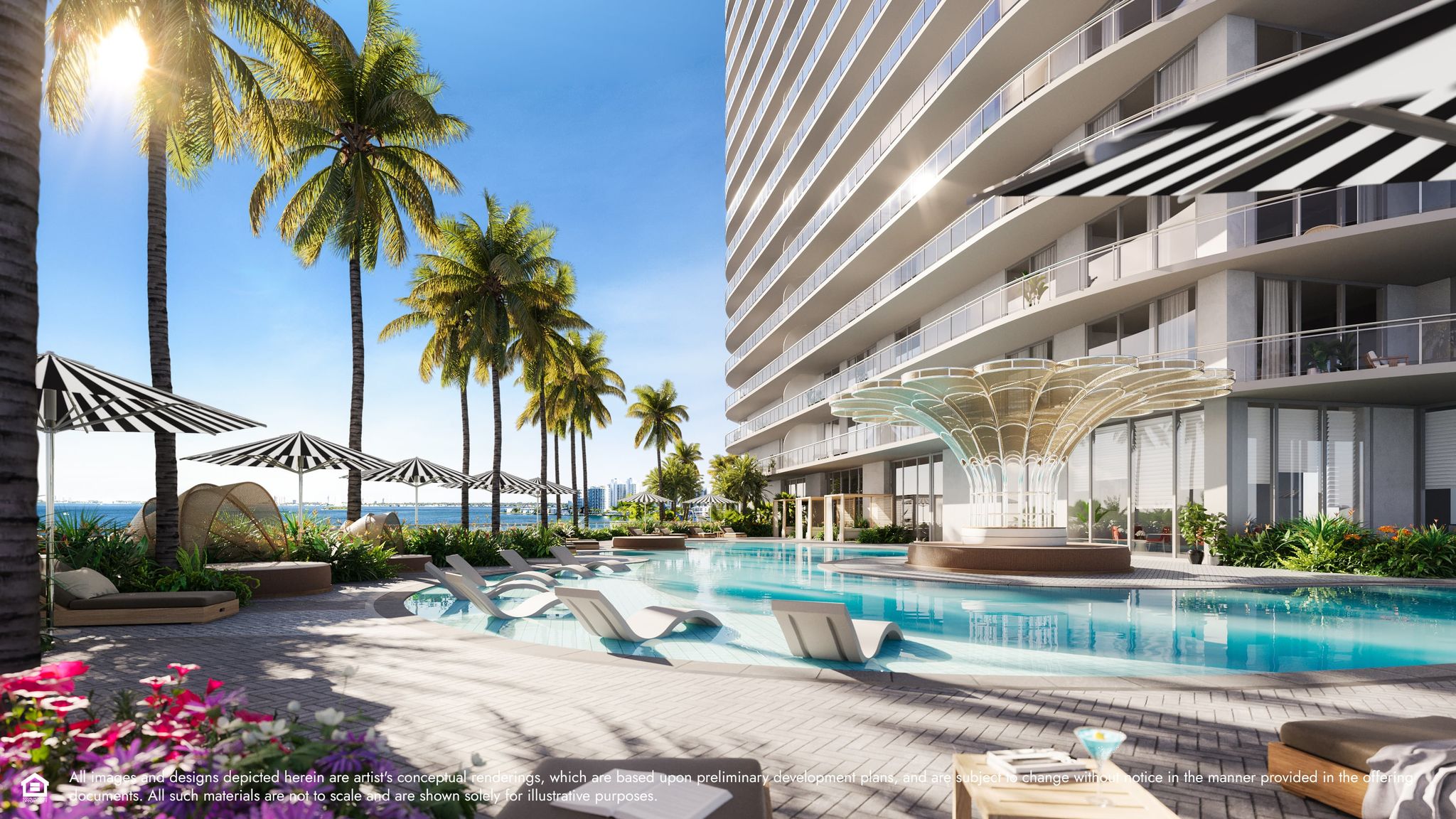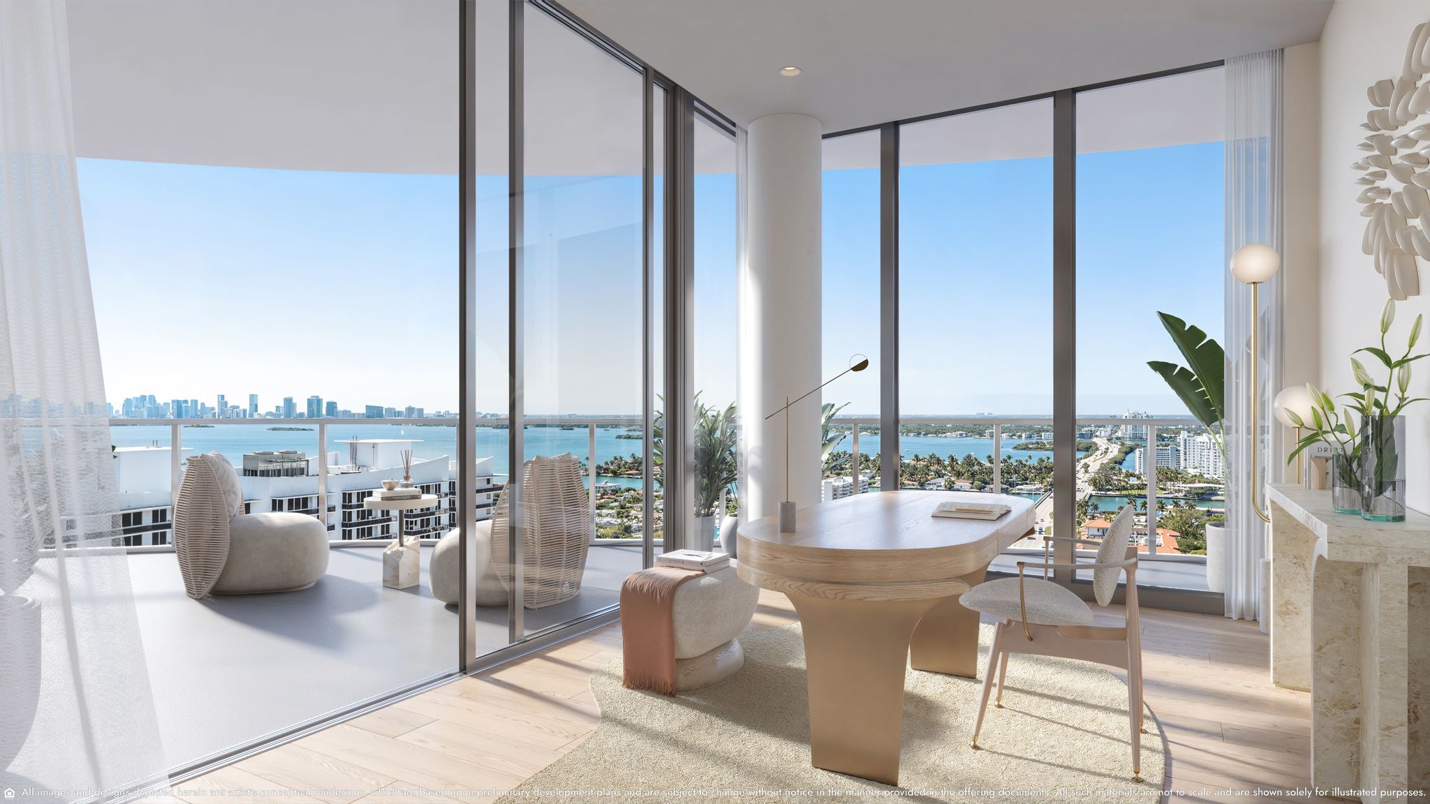 - Private wrap-around terraces with panoramic views of downtown Miami, Biscayne Bay & Indian Creek