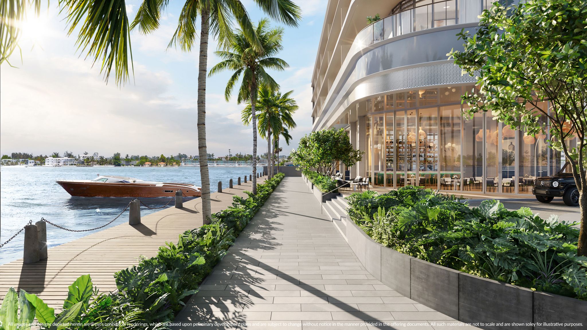 - Dog park, spa, and waterfront companion lounge