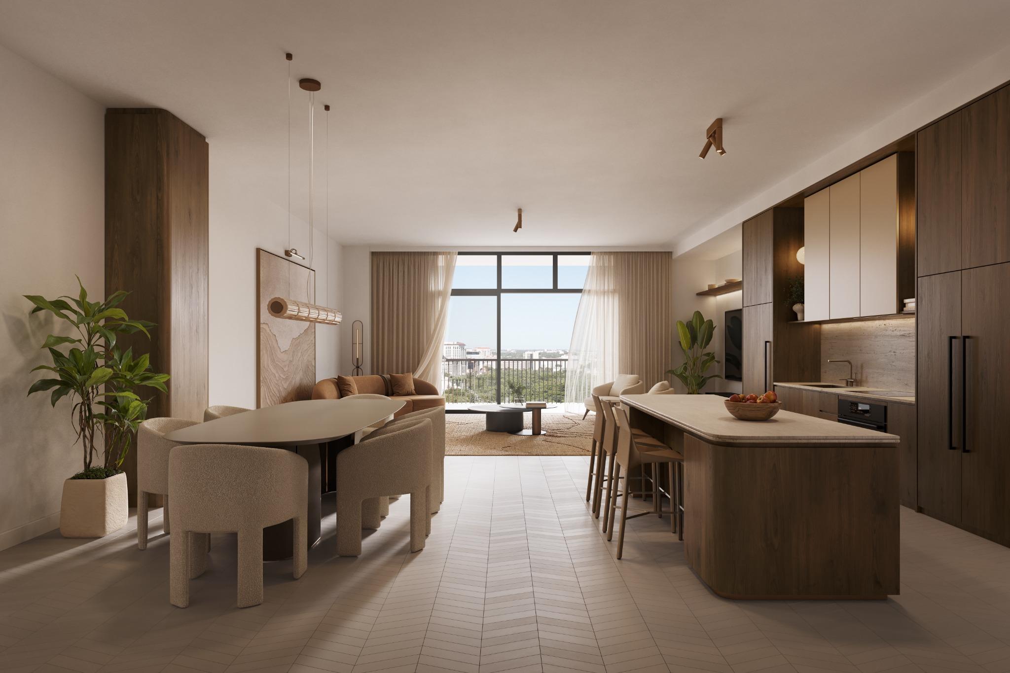Cora is Coral Gables’ first WELL certified residential building, integrating wellness features into boutique luxury living. With 74 residences, biophilic design, a 5,000 sq ft public plaza with art, and proximity to The Shops at Merrick Park, the project supports a holistic lifestyle combining health, art, and convenience in one of Miami’s most refined neighborhoods.