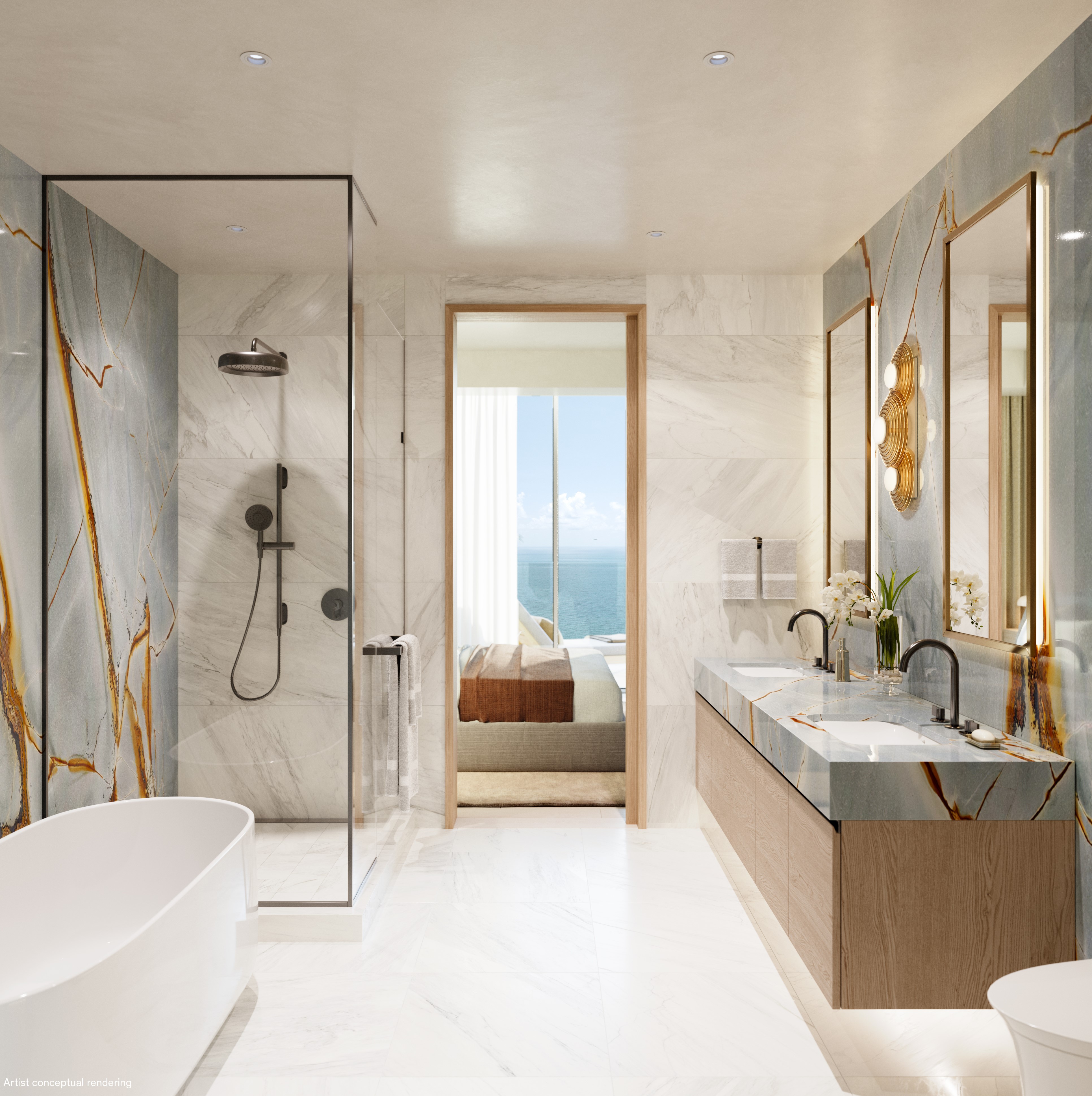 Designed by Arquitectonica with interiors by Meyer Davis, Icon Beach’s residences feature spacious layouts, floor-to-ceiling windows, and sleek, modern finishes, perfectly framing panoramic views of the ocean and Intracoastal.