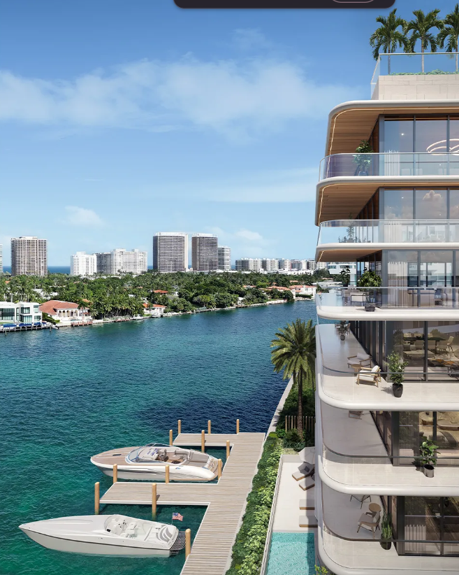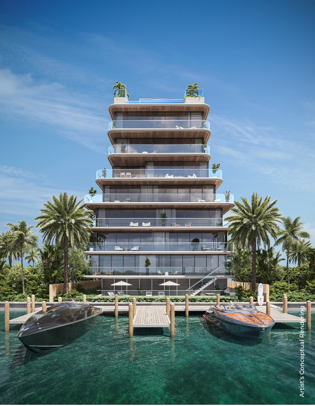 • Private boat slips available for residents, offering direct access to Biscayne Bay