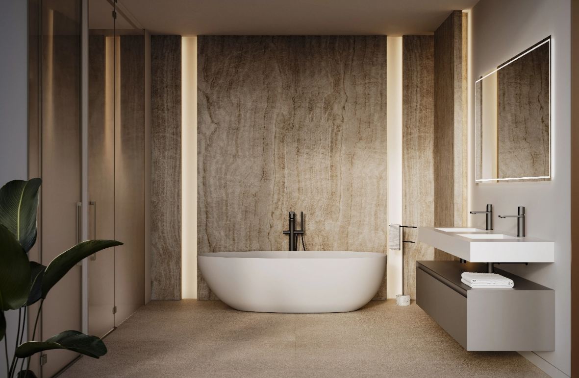 • Natural interior palettes inspired by tropical elements, waterfront surroundings, and modern coastal living