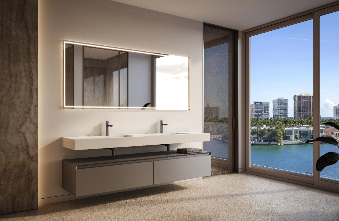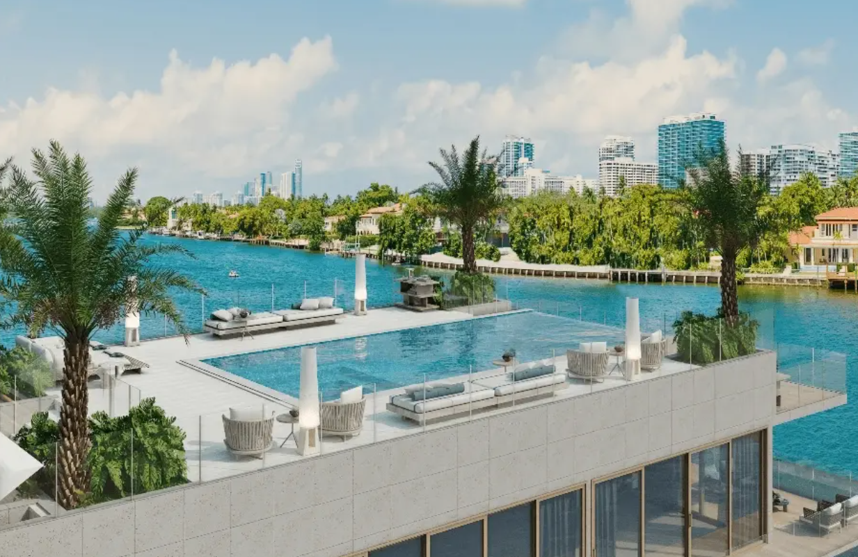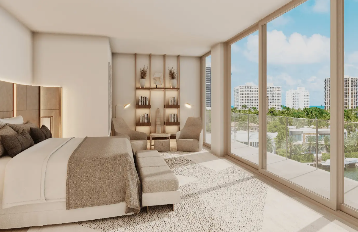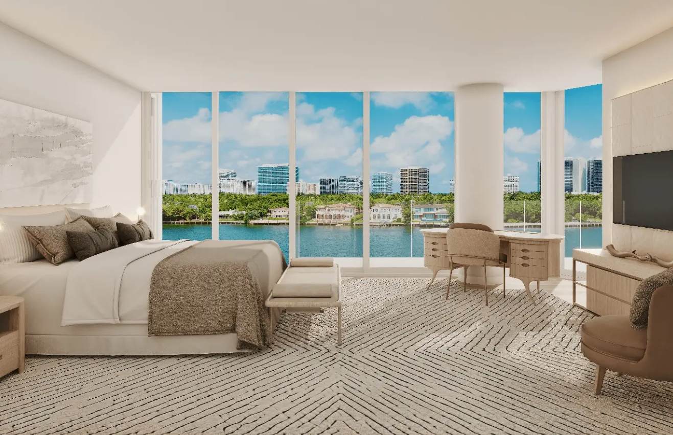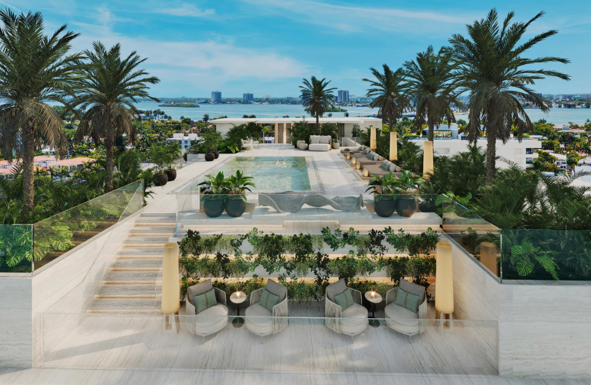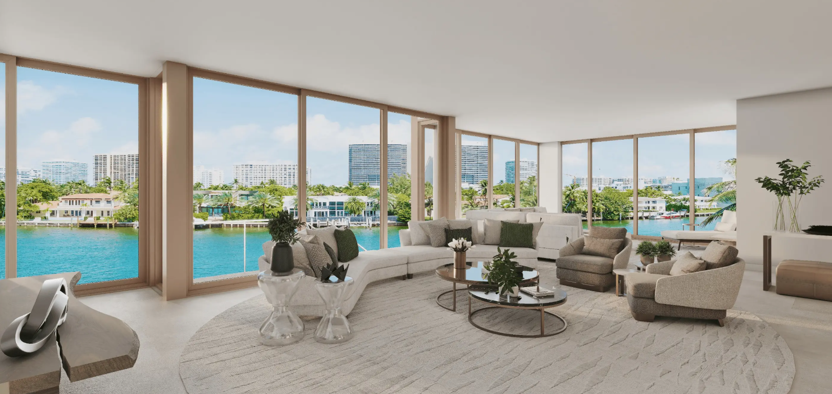 • Large wrap-around glass-walled terraces designed as true outdoor living rooms, ideal for entertaining, dining, and relaxing overlooking Biscayne Bay