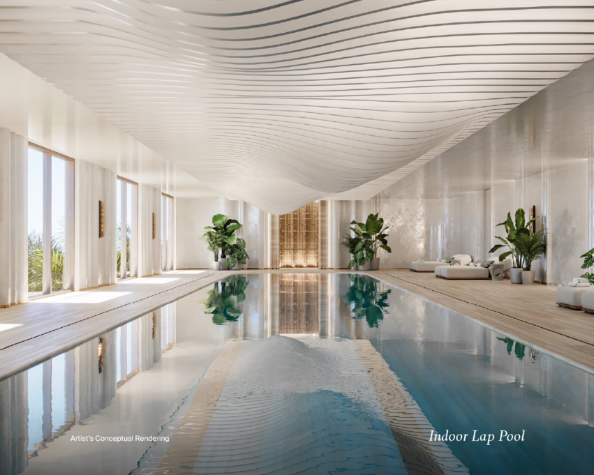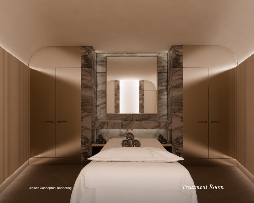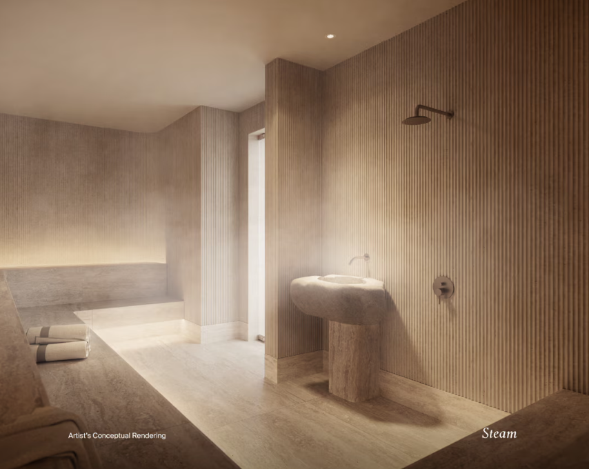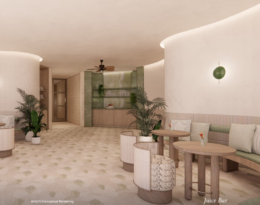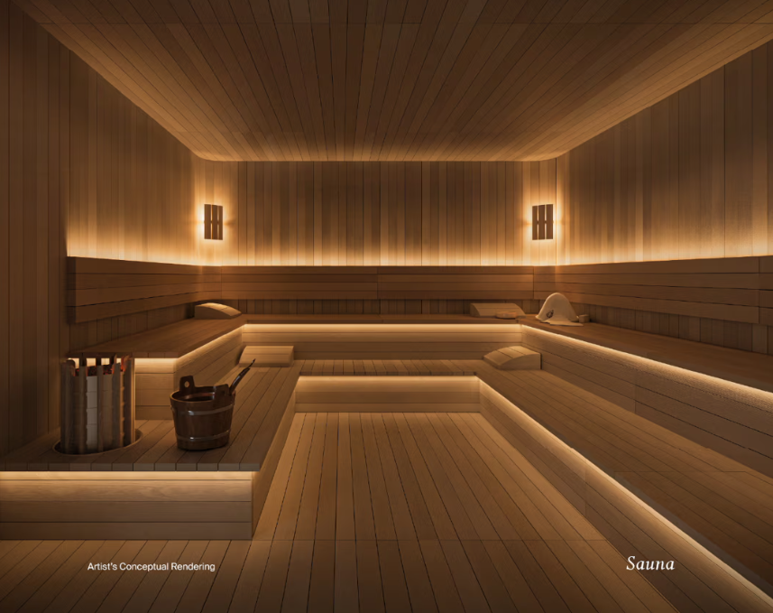 - Wellness center curated by The Wright Fit with fitness, yoga, and Pilates studios, salt spa rooms, dual saunas, and steam rooms