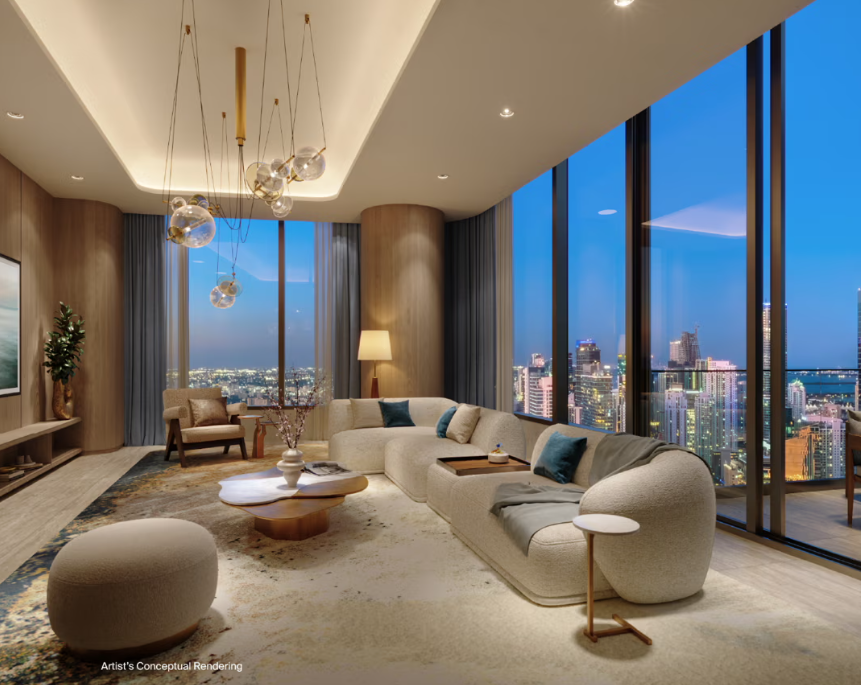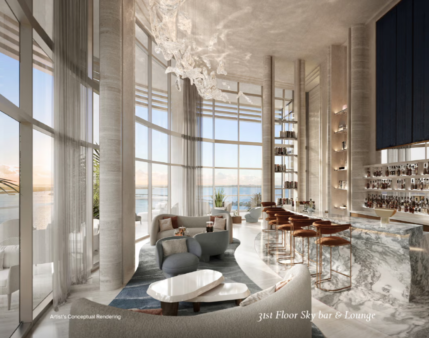 St. Regis Residences, Miami seamlessly blends timeless design, legendary service, and exquisite bayfront living for a new era of connoisseurship and comfort. With homes ranging from two to six bedrooms and private elevator foyers, each residence features 10.5-foot ceilings, custom European finishes, gourmet kitchens by Rockwell Group, and expansive private terraces with panoramic water and city views. Owners enjoy dedicated butler service, five-star amenities, and access to the exclusive St. Regis rituals and lifestyle traditions.