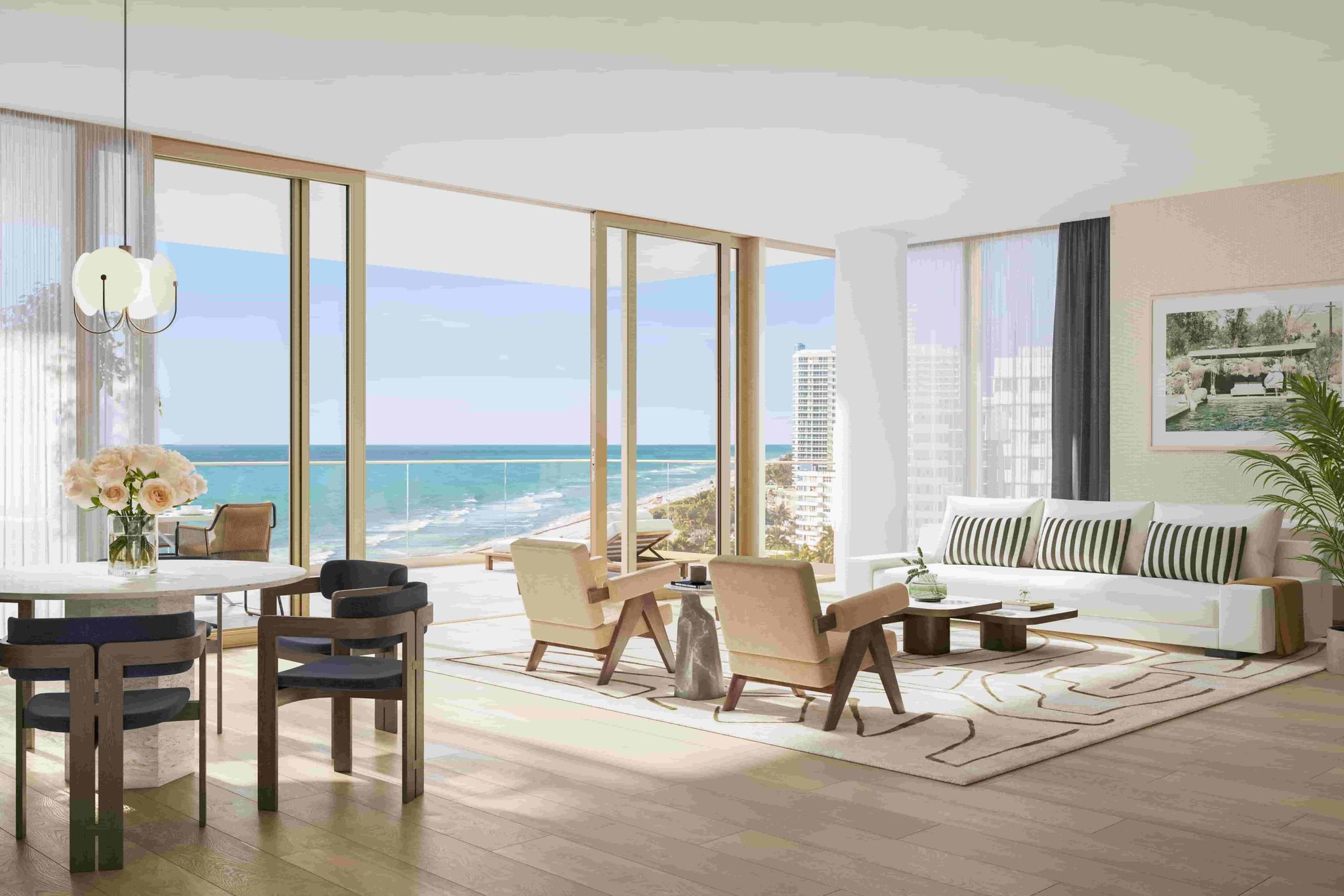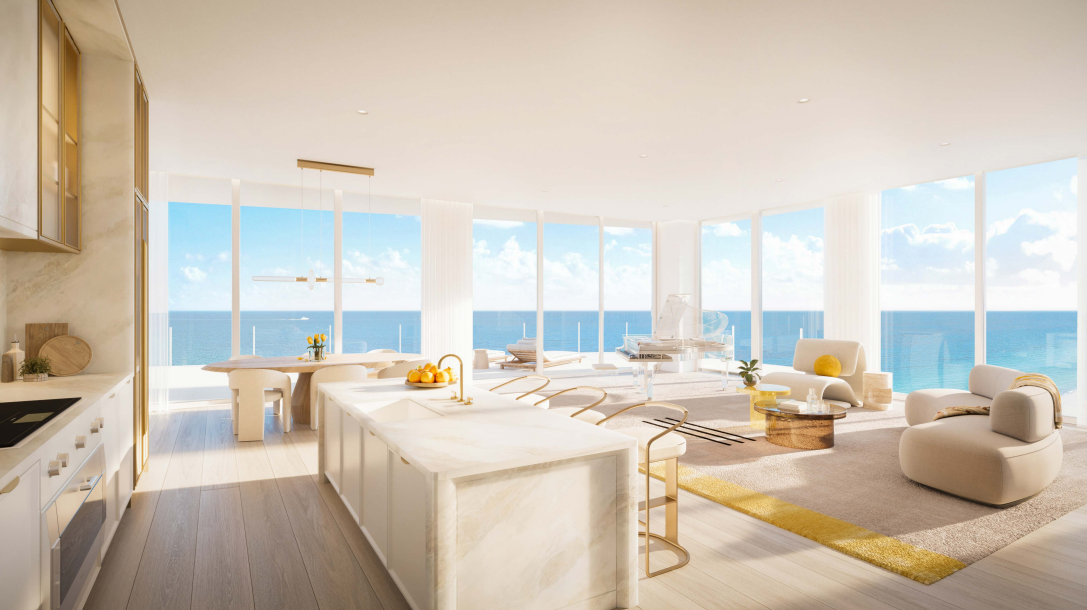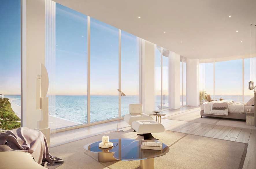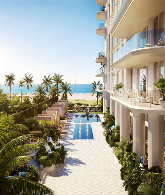 Architecture by Kobi Karp creates a striking beachfront presence that integrates with the historic context of Miami Beach while embracing modern coastal living. Landscaped gardens by Naturalficial introduce lush greenery and sculptural outdoor spaces, creating a serene oasis between the building and the beach.