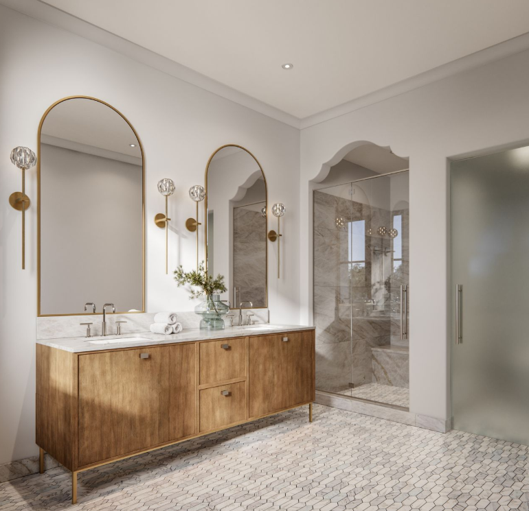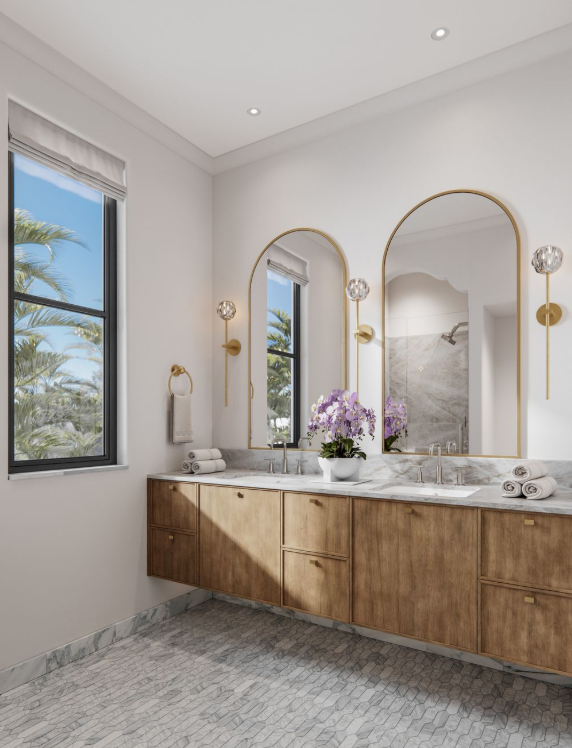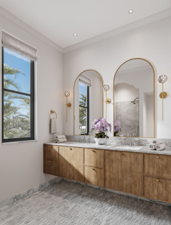 - Italian vanities with natural stone tops in master and secondary bathrooms.