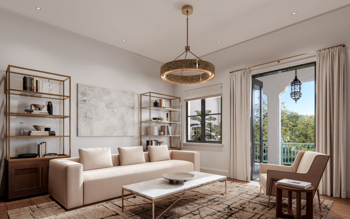 The Village at Coral Gables cultivates the elegance of a historic and tranquil community. It utilizes George Merrick's Spanish architectural design that intertwines past and present vision, "The Village Project". The community is expressed through a delightful variety of garden spaces, lush green avenues, plazas, walkways, and fountains for residents to revel in. The developer is MG Developer, Miami, LLC. The architects are De La Guardia Victoria Architects & Urbanists, and the builder is Torre Construction and Development. The artistic component features Glorietas inspired by the Ibero-American Exposition in 1929. The architectural style is inspired by 19th-century Spanish-colonial architecture with a beautifully functional and modern interior floor-plan. It offers an easy European pedestrian-living lifestyle within a quiet residential neighborhood, walking distance to golf courses, fine shopping and dining, and the downtown business district.