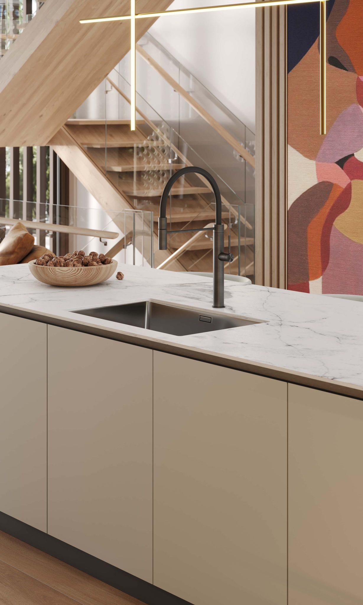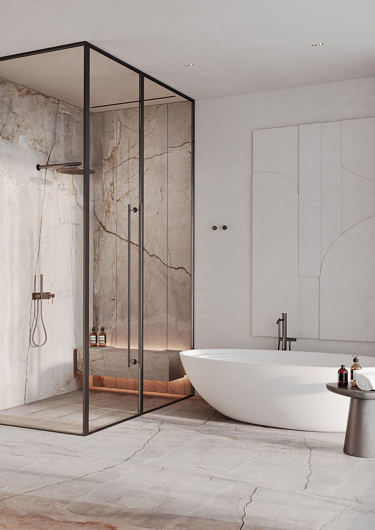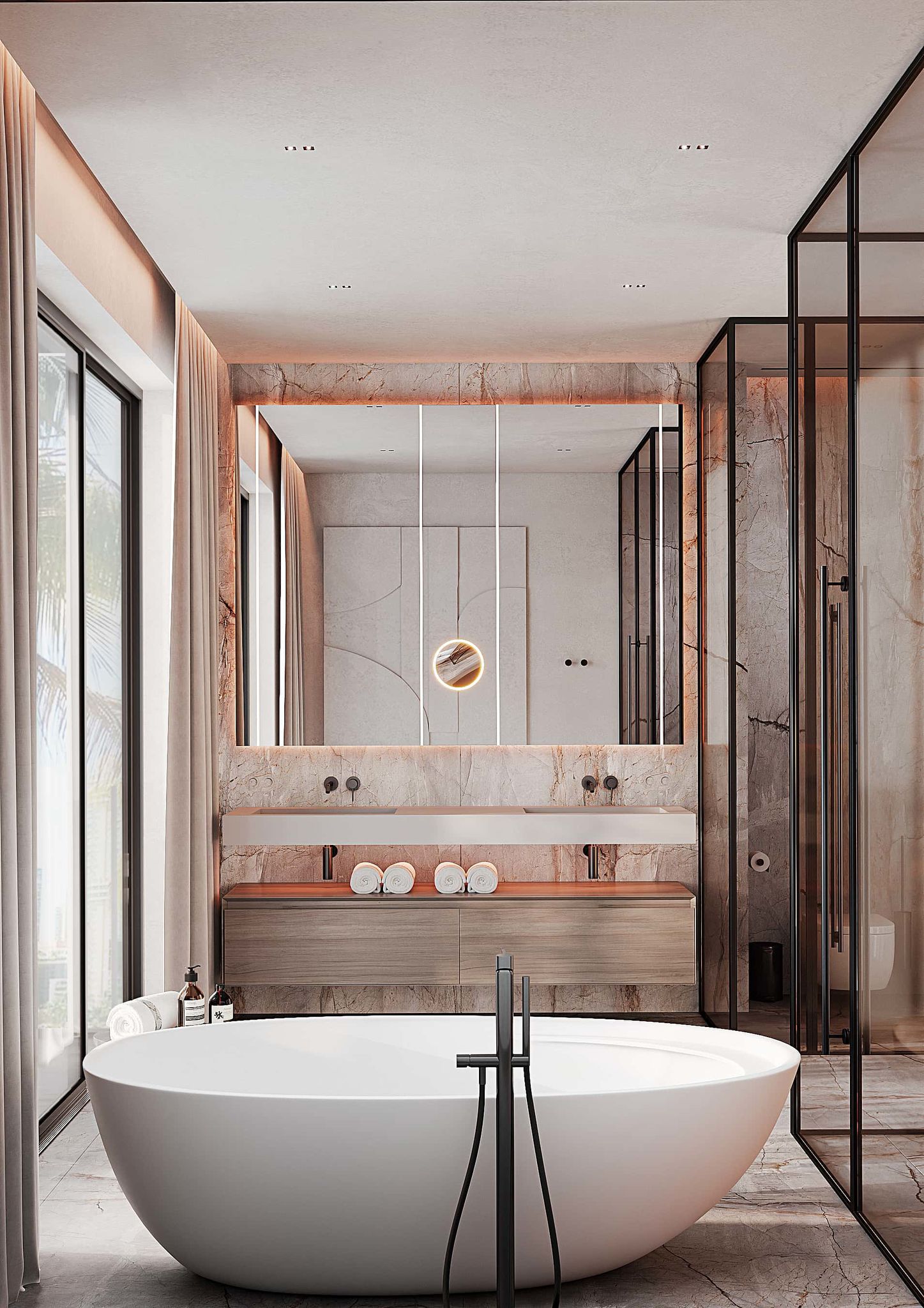 • Spa-inspired bathrooms with designer fixtures, premium surfaces, and contemporary detailing